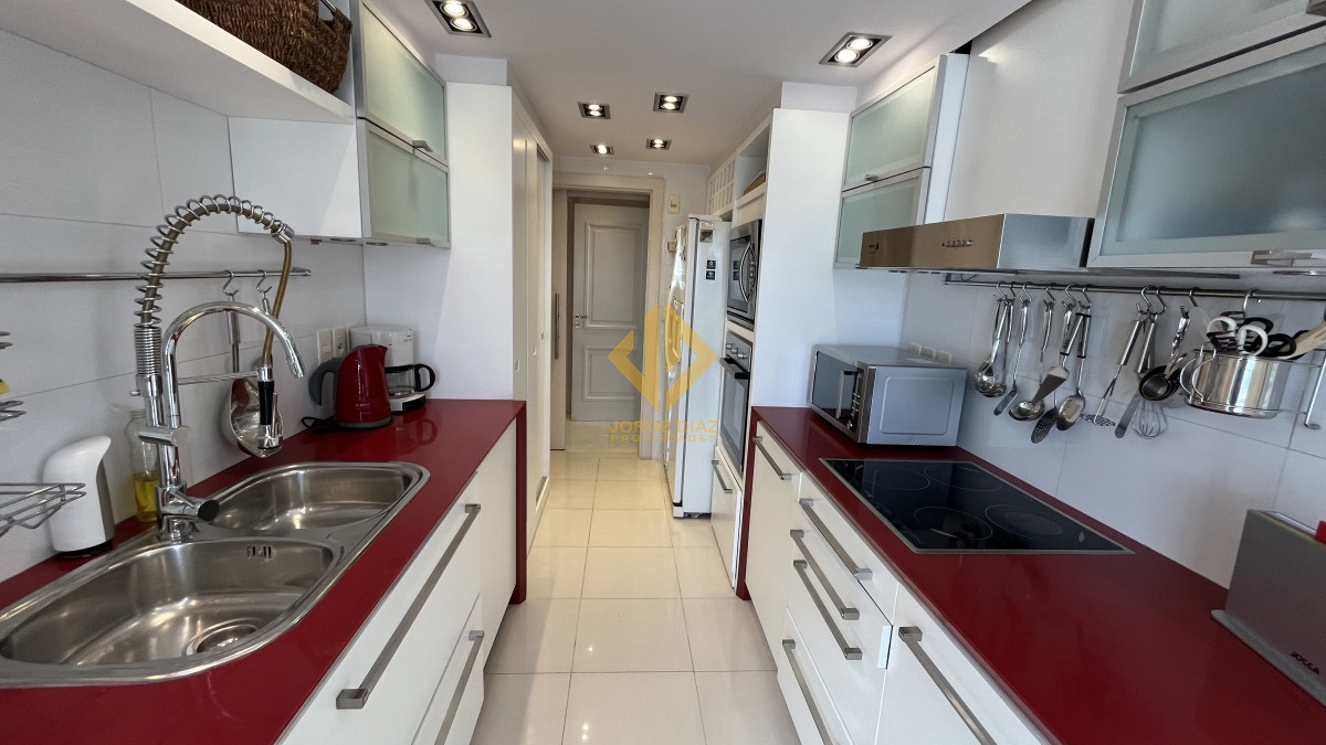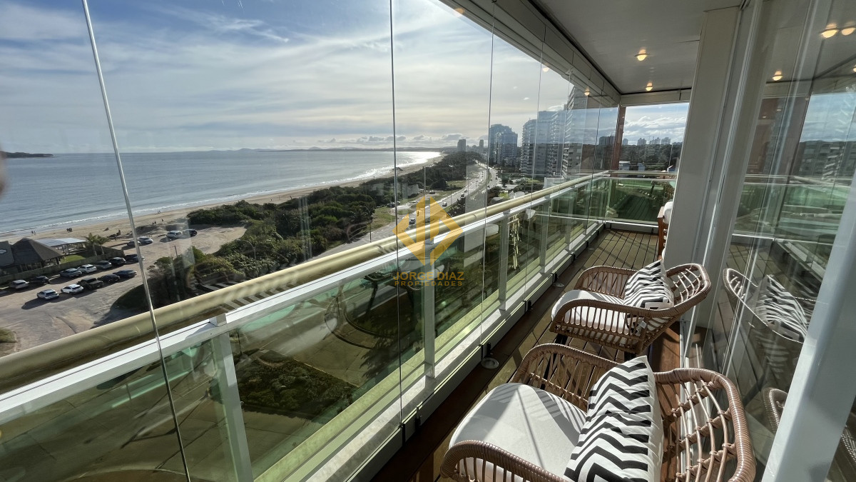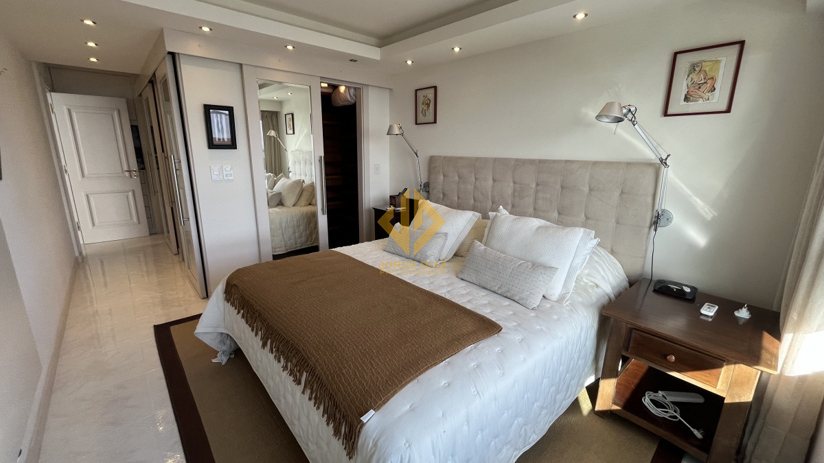 Apartamento completamente reciclado y con equipamiento de primer nivel La mejor torre de la playa Mansa, cercana a la Peninsula. Tres suites mas toilette y dependencia de servicio con baño.